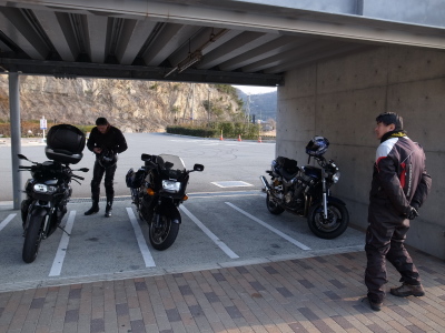 去年の「牛窓・瀬戸内ツーリング」で食べた牡蠣が忘れられず、2年続けて岡山方面が始動ツーリングとなった。朝の気温の低さは去年同様。紀ノ川沿線のまさっち氏からは前夜「−3℃で雪が降っています」(!)と参加断念のメールが届いた。当日5時過ぎ幹事ケロからも「ER-5のバッテリーがダウン。2号機アネーロで向かう」とのメール(こういう時は複数体制が羨ましい)。