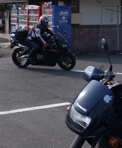 なんとか紙一重で出発はできそうな模様。・・・誰やこんな時期に始動ツーリングなぞ企画したのは(→ 私と企画部長です・・・)。企画部長はほっといても大丈夫、4台は予定通り出発。私とルーキー氏はケロが引いてくれたコース通り、はるさんは湊川から阪神高速31号経由で永井谷に抜ける200円経済コース、ひめやん氏はナビに騙されて山陽自動車道経由で、「ファミリーマート”たつの門前西”」に再集合。珈琲を飲んでいる間に気温もだいぶ落ち着いてきた。
