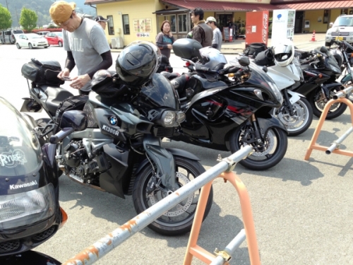 画像は道の駅「飯高駅」です。ひめやんさんK1300R、まさっちさんHayabusa、くるりんさんF800、ルーキーさんFirebladeです。