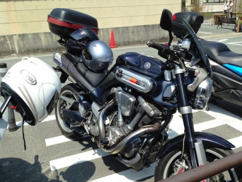 集合場所の香芝SAに、とみきちさんがビック1で登場しました。このビック1は元々とみきちさんのバイクですが、MT−01購入後友人のハルキチさんに渡りました。その後ハルキチさんがドカを購入、そしてとみきちさんの息子さんが大型二輪免許を取得、そんな事情でまたとみきち家へ戻ってきたということだそうです。お見送り、どうもありがとうございました!