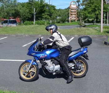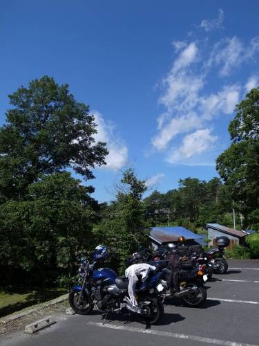 アトムサイエンス館を観なければ何も無い場所なので、20分程で出発。ちなみにこの旧道は鳥取では有名な心霊スポットらしいが朝は至って気持ちの良い道だった。旧道から国道482号に復帰し去年と全く同じコースを辿り、道の駅「蒜山高原」到着は8時40分。予定より20分早い到着にも係らず、レアな青いゼルビス500が駐車場に停まっていた。持ち主は6人目の参加者・企画部長ケロ。