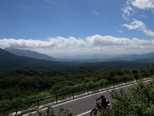 8時45分冷泉を後にし、休憩村蒜山高原の分岐を右折。そこからがいよいよ蒜山大山スカイライン〜大山周回コース。天気快晴、気温も期待通り暑すぎず、望み得る最高のコンディション。先頭で登っていくが後続のメンバーが追い上げてこない。皆このコースでは「走りよりも景色」という事で一致。