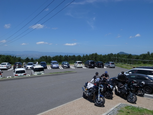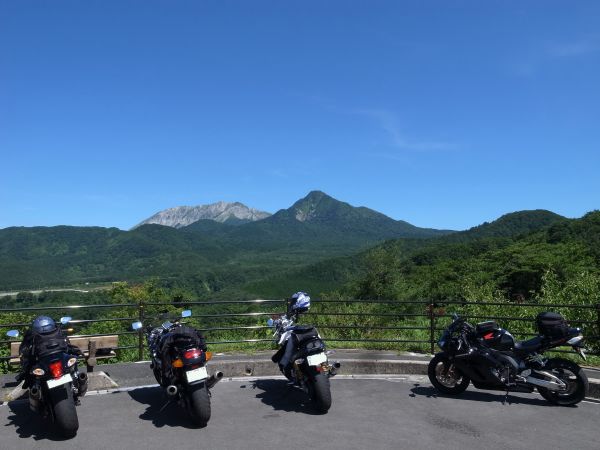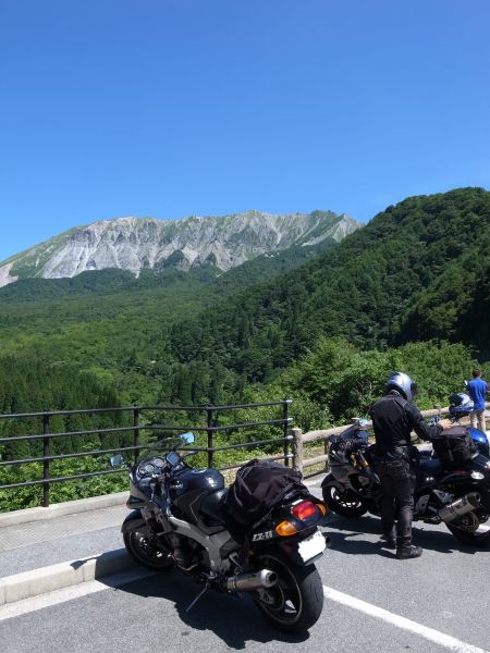 絵葉書のような完璧なコンディション、岩の塊で迫る大山、こんな景色をはるばる250km走って観に来る事ができるのだから、バイクのチカラは凄い。他のツーリングクラブ、家族連れの観光客等々、20台程停めれる駐車場は8割埋まっていた。