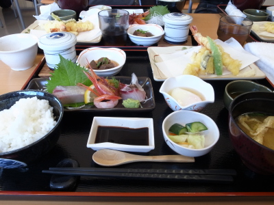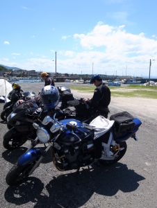事故の影響で1時間程鍵掛峠に滞在した為、この時点で11時45分。少し遅れ気味だが予定通り日本海に向けて一旦山を降りる。名和のお魚センターまで走り12時30分到着。2階の「恵比寿」で食事。恵比寿定食は個人的にはもう少しお刺身が多ければ言う事無かったが、御飯お替りもできてボリューム・味ともに個人的採点は80点で合格。窓の外には遠く隠岐を眺める事もできた。
