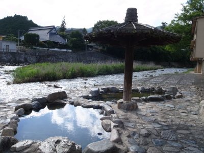 吉井川沿いの足湯。温泉街としてはマイナーだが、素朴な風情がある。