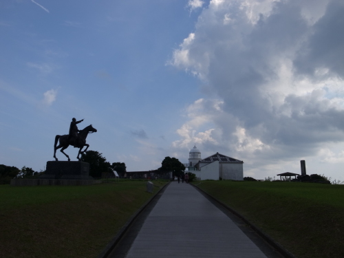 | 燈台が開くのは9時から、という事で、灯台横の小道をテクテクと”馬坂”という小さな半島の先まで行く。 |