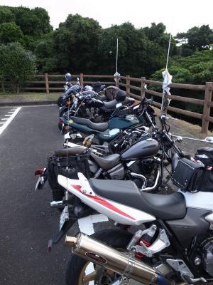 今回の参加は、ケロ企画部長&Keiさん@ER-5、はるさん@XJR1300、お久しぶりのこたやん氏@CB1300、こたやん氏御友人Kさん@ナイトホーク、そして私ミミオ@ZX-11の5台。予定時間通り5時半出発。