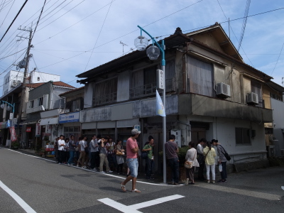 | 11時半開店の30分前に到着してこの人の列。結局開店時間を5分程オーバーしてようやく店内に入る。 | |