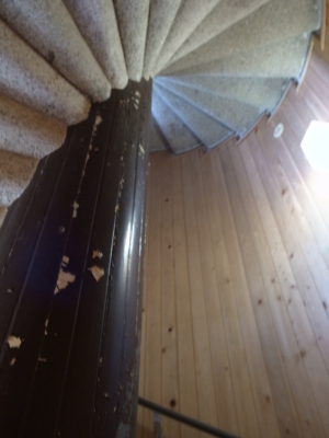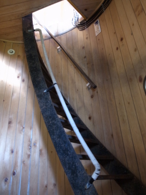 | 中に入ると立派なマニアの心をくすぐる螺旋階段。幅が狭く急傾斜。ヨーロッパの教会の塔に登る階段に似ている。 | |