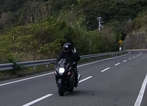 黒隼氏@隼。最近ゴルフの方がお忙しいようで、隼の走行距離は余り伸びていないとの事。数年前までと異なり、行程中数回ドカーンとかっ飛んでいく事は少なくなったが、本気で飛ばしたらほとんどのメンバーはついていけない。