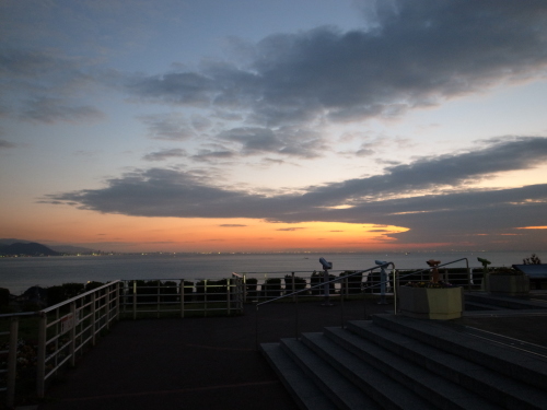 さすがに集合1時間前、誰も到着していない。SAテラスに出ると東の空が明るくなってきた。毎度の事ではあるが、真っ暗な中走り、最初の休憩場所で日の出を観るだけで、随分と得した気分になる。