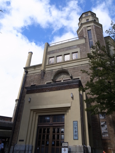 | 片倉館。去年の南信州ツーリングの時から気になっていた。和洋折衷の大正浪漫の建物は期待以上に味がある。 お風呂はまさにテルマエロマエの世界。冷えた体を大いに溶かしてくれた。 風呂を上がったら、今日最後の合流メンバー、何と九州から参加頂いたシャーミンさんが待っていてくれた。全員無事揃ったところで片倉館2階で食事。 |