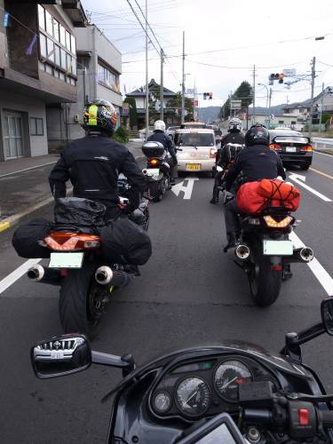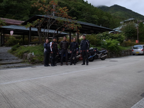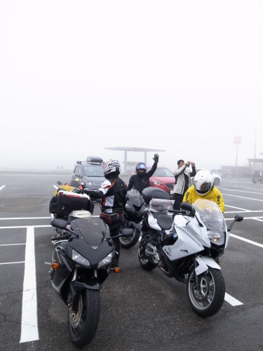 朝、ren隊長ご指導の元メンバー全員で朝食の準備。ちゃんと「鉄馬乗魂」のTシャツを着てきてくれた粋なrenさん。外は若干霧雨が残っている為、出発時間を遅らす。11時満を持して出発!行き先は皆で協議の上、当初予定通り渋峠を目指す事になった。