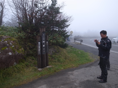 渋峠には13時半過ぎに到着。周りは霧で包まれている・・・。