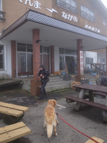 | 避難できる場所はこのロッジ、渋峠ホテルしかない。賢いワンちゃんは餌が貰えないと判ると一瞬でプイッと向こうを向いてしまった。 |