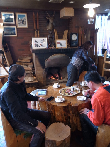 苦肉の策で入ったロッジだったが、何と暖炉があった!後に出てくる事になるのだが、昔年末年始を過ごしにやってきていた山小屋「もみの木小屋」が健在だった頃の姿を思い出して懐かしかった。暖炉を前にすると体は勿論、心も温まる。20分程経って、ルーキー氏が無事到着。