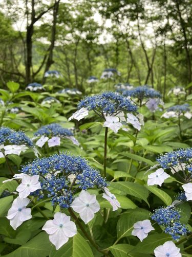 途中小雨に降られながらも、10時前には予定通りアジサイ園到着。トップの写真、静かな公園に咲くガクアジサイが印象的。見頃には若干早い感じはしたが、それでも一面アジサイの景色は圧巻だった。