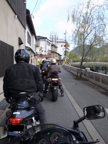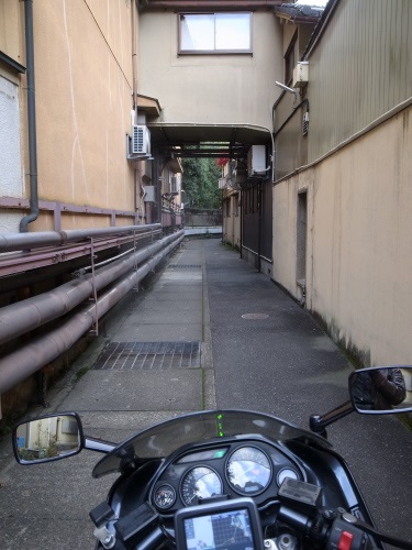 城崎温泉の街中に入った時、先についていたren氏のZZR1400とすれ違い合流、そのまま鴻の湯に向かう。途中方向転換を間違えて迷い込んだ温泉街の路地裏は大型バイクではなく散策するに面白そう。いつか城崎温泉だけを目的地にゆっくり歩いてみたい。