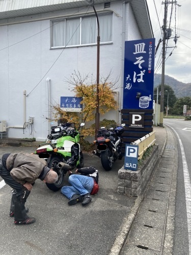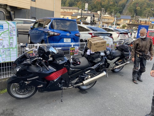 私のZX-11同様にGPZも純正部品は欠品が出てきているようだが、ヤッシャーさんの元気なGPZを観ると嬉しくなる。90〜00年代のカワサキは確かに年数は経っているがきちんと整備をすれば全然最新のバイクに引けを取らないし、こうして何百kmの日帰りツーリングも難なくこなせるポテンシャルがある。GPZをお見送り後Ripさんと二人城崎に向かう。