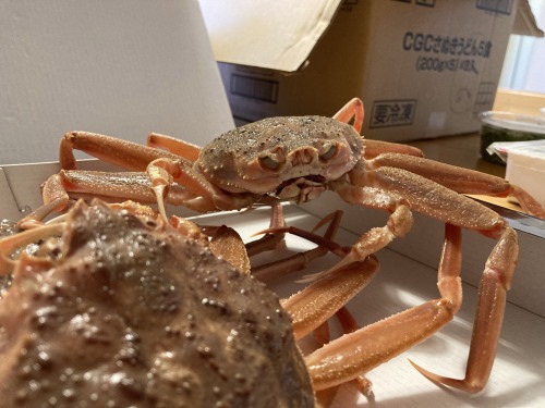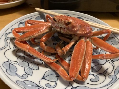 袋から出したばかりのズワイガニ。じっくり眺めるのは初めてかも。顔はほぼ異星人。目がとっても怒っていらっしゃる、ちょっと怖い。料理の動きの素早さに全くついていけず、結局renさんに料理をして貰った(ありがとうございました)。