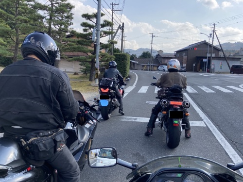 ファミリーマートを5台で出発。出石まで抜ける国道482号は確か結構美味しいワインディングがあったと思うので、強者の諸先輩に先を譲り、私は最後尾で出発。そして二つ目の信号で面白い事が起こった。