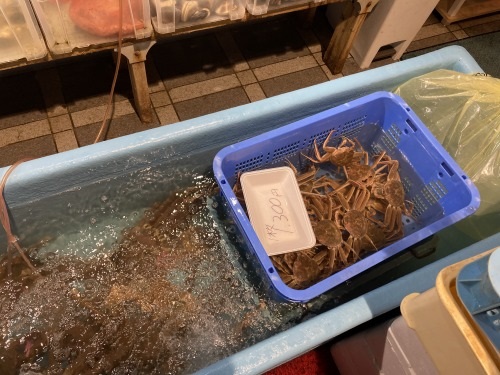 今日のメイン、生きたズワイ蟹!!一匹 1,300円は安い。