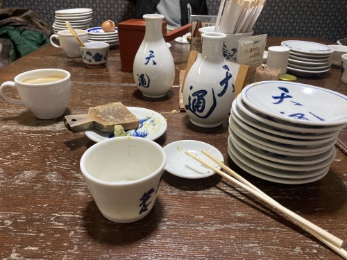 元々5枚に追加を5枚頼んだら、充分お腹も満足。これで総額 1,650円で私は大満足。関東や信州の有名蕎麦屋の方が余程ぼったくりで、天通の皿そばは良心的で美味しい。しかも「ライダーさんにはサービスで珈琲を御馳走しています」と綺麗なお姉さんから頂いた食後の珈琲も美味しかった。美味しい蕎麦、綺麗なお姉さん、珈琲・・・。雑音に騙されずに来て良かった!ちなみにヤッシャー氏が11枚でRip氏は何と15枚!