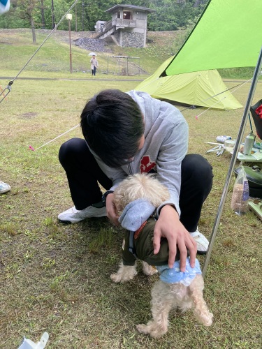 宴会で酔っ払いに囲まれていても、くるりんさんのひざ元で静かに話を聞いているソラ君偉い!。次回は広々したサイトで存分に遊ばせてあげたい。