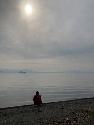 国道367号〜国道303号で琵琶湖方面に折れて県道54号で琵琶湖に突き当たる。隣りで運転しているkenが「うわー!」と叫んでいる。「とめていい!?」との申し出で小休止。実は琵琶湖を間近で観るのは初めてでえらく感動している。湖面の静けさと大きさが唯一無二らしい。私自身は勿論何度も観てきているので「ああ琵琶湖か」としか思っていなかったけれど、改めてkenの説明を聞いてなるほどと思った。当たり前の景色も遥か昔、初めて観た時にはきっと同じように感動していたんだろうな。残念ながらもう覚えていないけれど。