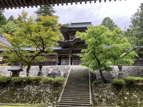 山門に着いた頃から雰囲気がガラッと変わる。正対していないオフセットされた参道と山門の配置が印象的。