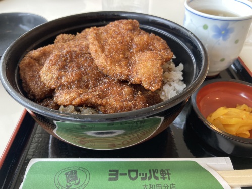 前日にケロも食べた「ヨーロッパ軒」大和田分店で昼食。開店11時丁度に入店するも、ものの10分ほどで店はいっぱいになった。ソースカツ丼は駒ヶ根のものとは違ってシンプルなのだが、期待以上に美味しかった。