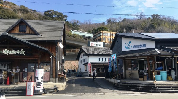 この室津漁港はカキを中心に、土産物にできる海産物を売っているのですが、食べられるようになっている店がなく、観光客の数は多くありません。もともとそういう目的はない漁港だったのでしょう。カキがその場で食べられるところがあったら、とってもうれしいんだけどね。