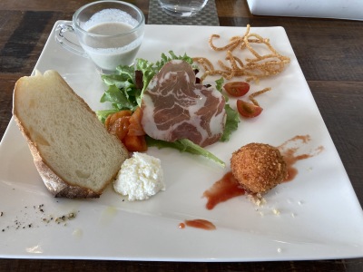 昼食を食べるために、一本松展望台からそう遠くないところにある「カフェ&レストラン ロッサ」というお店へ行きました。