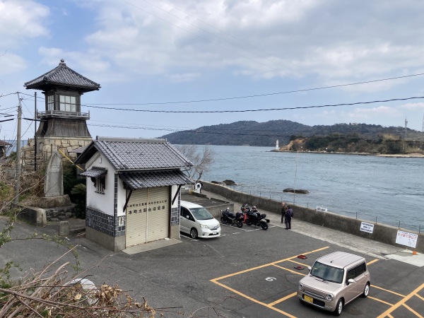 この前の海は前島という比較的大きな島との海峡になっていて、すごく潮流の流れが速いところです。沿岸航法が中心のかつての海運ではこういうところを通っていたようで、川のように流れる海のようすを見ていると、船乗りたちはさぞ怖かったことだろうと思いました。