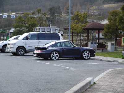 到着すると見慣れた紳士が・・・(笑)。丸さんでございます。寒いので車で見送りに来たと・・・。気温は5度。正常な判断と思料されます。 (←丸さんの愛車ポルシェ) |