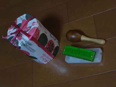 毎回恒例の私ケロリンの家族対策・・・(笑)。 炭酸煎餅、ハーモニカ、マラカス、以上3点でございます。私ケロリン、カメラ関係に投資しすぎて小遣いがありません(苦笑)。許せ、嫁チビミニ・・・。 |