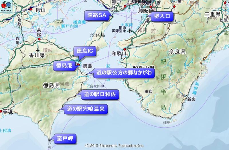 | 5 | <御参考 徳島港からの復路行程について> ※徳島IC→阪神高速堺出口までの高速代…\3,450(ETC休日割引適用) ※フェリー運賃→\4,500(750cc以上の場合) ※和歌山IC→阪神高速大浜出口までの高速代…\1,470(ETC休日割引適用) |