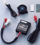 | ○ 警報器 大抵本体(センサー)はバイクの小物入れ等内部に設置し、それとは別にオン・オフのリモコンがついている商品がほとんどです。 バイクを止めた状態でリモコンでスイッチオンにする事で、本体を待機状態にします。 その間にバイクをゆすったり衝撃を与えたりすると、警報機が鳴る仕組みです。バイクの異常を警報で知る事ができるので、警報機を設置しておくとかなり安心する事ができます。 電源はバイクのバッテリーから取るものと、電池式のものがあります。 バッテリー式は電池交換の手間が掛からず、操作も手軽ですが、バッテリーに対する負担が大きいのがネックです。常にバッテリーを充電できる環境、もしくは「バッテリーは消耗品じゃないか」と割り切って車検の度にバッテリーを交換している人ならば、バッテリー式をお勧めします。 反対にできるだけバイクのバッテリーを長持ちさせたい人は電池式を選ばれると良いでしょう。 |