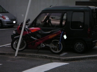 (某所にて、一般的な月極駐車場に保管しているバイク