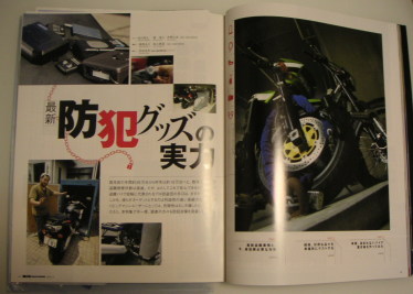 だいたいバイク雑誌の傾向として、夏には「北海道特集」、春先は「新車カタログ」等々1年を通じてのパターンがあります。 そのなかで真面目な雑誌は1年に一度位、バイクの盗難対策を特集で取り上げるのです。 もっともスポンサーに踊らされたちょうちん記事が多くて、本当に客観的なインプレかと疑問を持ちたくなるような雑誌も多いのですが、それでも何も無いよりは遥かにましだと思います。