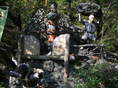 | 駅前のジオラマ。 南北朝時代に後醍醐天皇方と幕府方でこの近くで合戦があったらしい。 |