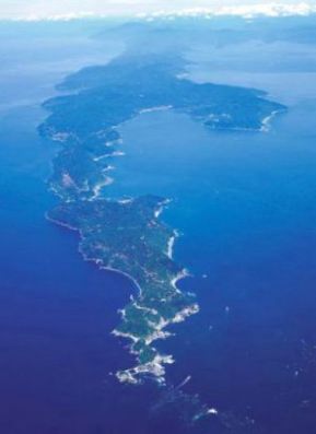 半島の長さは50kmあり、その背骨を走るように国道197号線