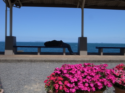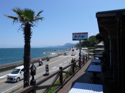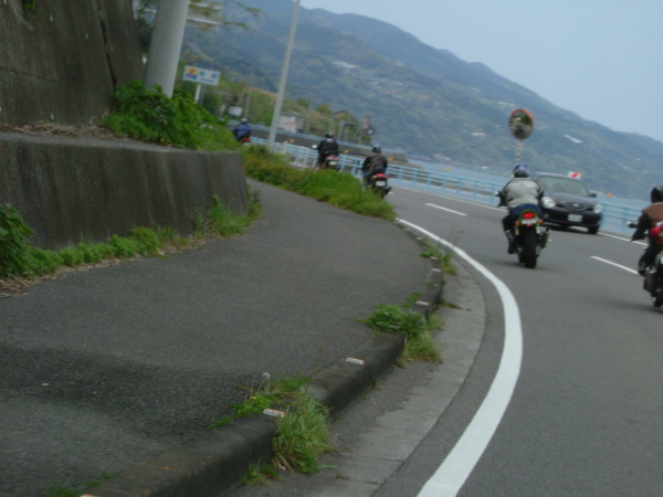 日本に数ある道の中で、私が一番好きな道はこのゆうやけこやけラインです。愛媛県伊予市から佐田岬のつけねまで、瀬戸内海沿いを50km程走ります。西は山が迫り、東は穏やかな瀬戸内海の海。点在する漁港集落を抜けながら、信号がほとんど無い中ハイペースで飛ばしてゆけます。 肱川の河口にある長浜町には、赤い可動橋があります。ここは冬の底冷えするとても寒い日、ごく稀に「肱川嵐」という現象を見る事ができます。内陸の大洲に溜まった霧が肘川を流れ下って、霧の川になって真っ青な瀬戸内海に流れ下る現象です。出現条件が厳しく、私も学生時代に1回しか見た事がありません。もちろん全国ミーティング実施時期は季節外れなので絶対見る事ができません。