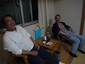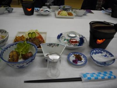 お風呂の後は恒例の大宴会でございます。我々のやかましさを察してのことか(笑)特別に宴会場があてがわれております。2度目の乾杯の後、大阪・九州入り乱れて戦闘モードに突入でございます(爆)。