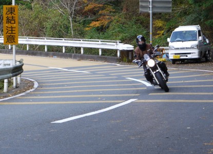 「しらまの里」から次の「日高川龍遊」までの424号は中高速コーナーが続く快走路。Tがニューカメラのテストを兼ねてライディングを撮影してくれた(下の写真.。Tの写真はうえぽん氏撮影)。今回の俺サ大賞は誰?今回に限っては私、なかなかいい線いっているのでは??(一人ニヤニヤ)後日それをTにメールしたら「図々しい」と言われてしまった。