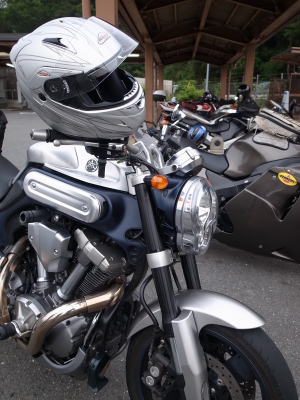 5台はその後県道34号、鈴鹿山脈の山間をトコトコと北上していく。スピードを上げずにテクテクと走るのも楽しいものだ。国道306号で最後の鈴鹿越え。鞍掛峠を登る。県道34号が細かったので、国道306号がやたら走り易く感じる。前を走るこたやん氏はバイクを左右に倒しながらウォームアップ。嬉しそうなのがこちらまで伝わる。前にRip氏のブログでこたやん氏の蛇行運転が紹介されていたが、この人のはあおっているのでは無くて、喜びの形なのだろう。神奈川のヤッシャー氏がワインディングになると、嬉しくて仕方が無いオーラが出るのだが、よく似ている。・・・そんな感じで残りのメンバーも想像以上に美味しいワインディングを堪能した。