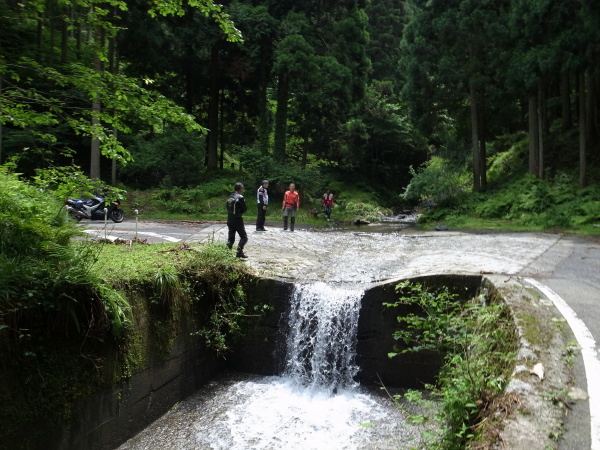 5台は鈴鹿山脈の東、国道306号を北上し、421号を折れて最初の鈴鹿越え。石榑峠(今はトンネル)を越える。登りに入ってからメンバーに道を譲ると、メンバーはご機嫌に登っていった。黄和田の集落で県道34号に折れて、今度は鈴鹿山脈の西側山間を抜ける。筒井峠の先、有名な洗い越しに到着。