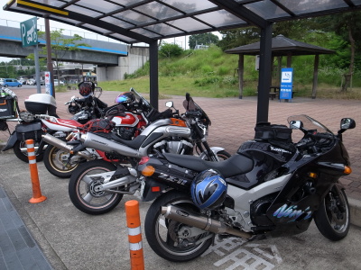 関ヶ原ICから名神を南下。最後の休憩ポイント草津PA到着は3時半。朝5時半の香芝ICでは6台+お見送り1台。天理IC辺りで1台追加。土山で2台追加し、3台離脱。その後片岡温泉で1台、昼食場所で1台、関ヶ原で1台離脱し、最終の解散ポイントまで走ったのは3台だった。アメーバのように増殖分裂を繰り返しツーリング行程を走る、RYUBE大阪の典型的なツーリングだ。
