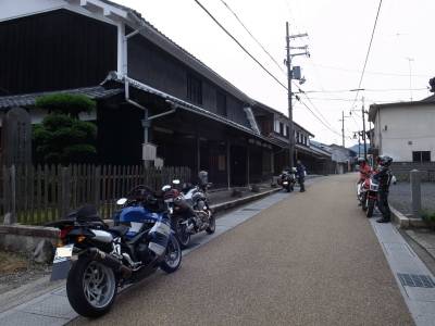 既に到着していたのは、予定通りの名古屋ダイ氏@BMWと、おや?箱キャリアを3つ積んだアフリカツイン・JUN氏もいる。程なくマッチン氏も無事合流。全員揃ったところで記念撮影(トップの写真)。RYUBE大阪9名大集合!・・・1時間後出発する時には6台に減っているのだが(笑)。職場に戻られるとみきち氏を皆で見送った後、暫し東海道の宿場町「土山」を見学する。