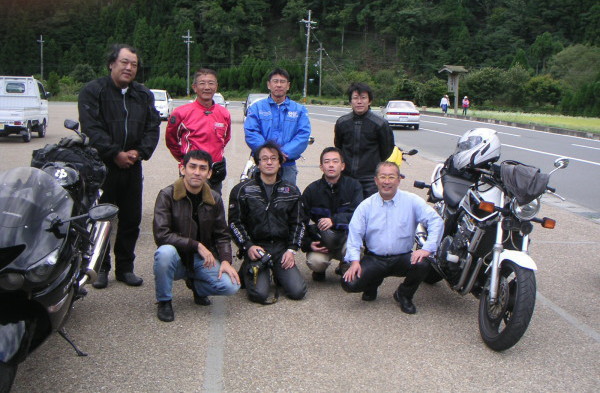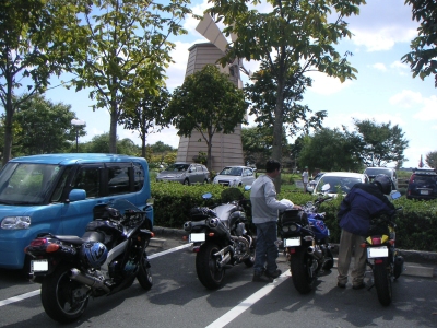 | ここでrenさん、とみきちさんとご友人のビューエルさんが合流。RYUBE名物・分割併合スタイル健在(爆)。とみきちさんはここから帰路に・・・。 |
